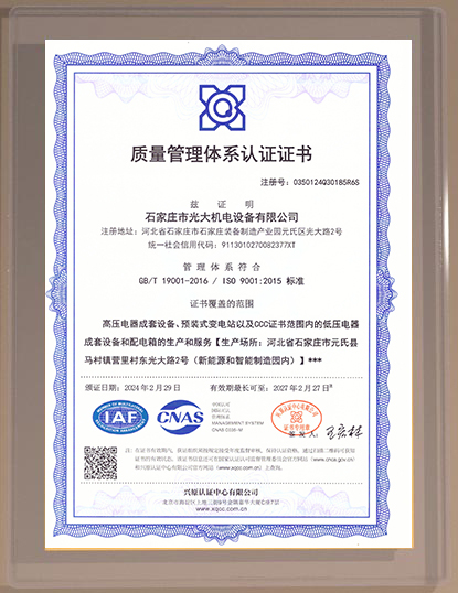 石家莊市光大機電設備有限公司位于石家莊市新能源和智能制造園區(qū)光大路2號,緊鄰107國道,交通便利。公司匯聚了一批鈑金、強電、弱電技術(shù)、安裝施工人員,并有河北科技大學、石家莊大學等高校的技術(shù)支持與協(xié)作,擁有全系列的剪、折、沖、焊、安、檢等先進的生產(chǎn)和檢測設備,嚴格執(zhí)行已順利通過的國家強制3C和ISO9001質(zhì)量標準和規(guī)范。...